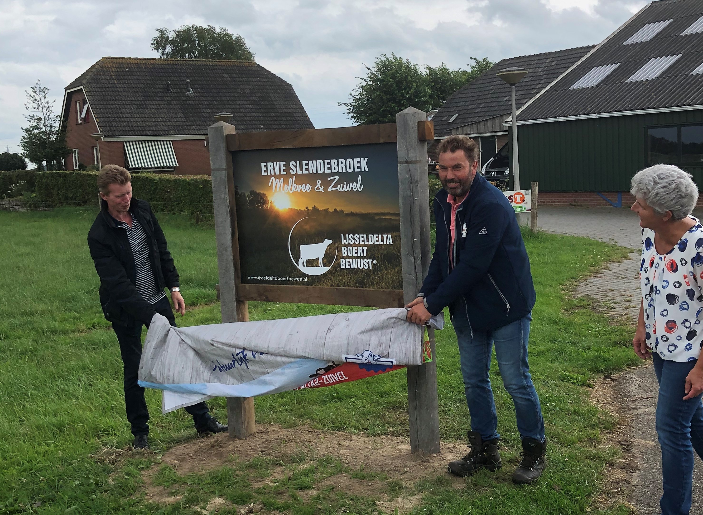 Aan de zuidkant van de stad Zwolle bevindt zich al meer dan 150 jaar het agrarische familiebedrijf Erve Slendebroek. Op natuurlijke wijze produceren Jaco en Roelien Visscher hier boerenzuivel zoals melk, yoghurt en vla. Zij vinden het belangrijk om actief contact met hun omgeving te zoeken en mensen te vertellen over de herkomst van hun verse en gezonde producten. Dat is ook de reden dat zij deelnemer zijn geworden van IJsseldelta Boert Bewust, als onderdeel van de Gebiedscoöperatie IJsseldelta. Op dinsdag 30 juni werd op Erve Slendebroek het IJsseldelta Boert Bewust bord feestelijk onthult én het 3-jarige sponsorcontract van Rabobank IJsseldelta met IJsseldelta Boert Bewust ondertekend.