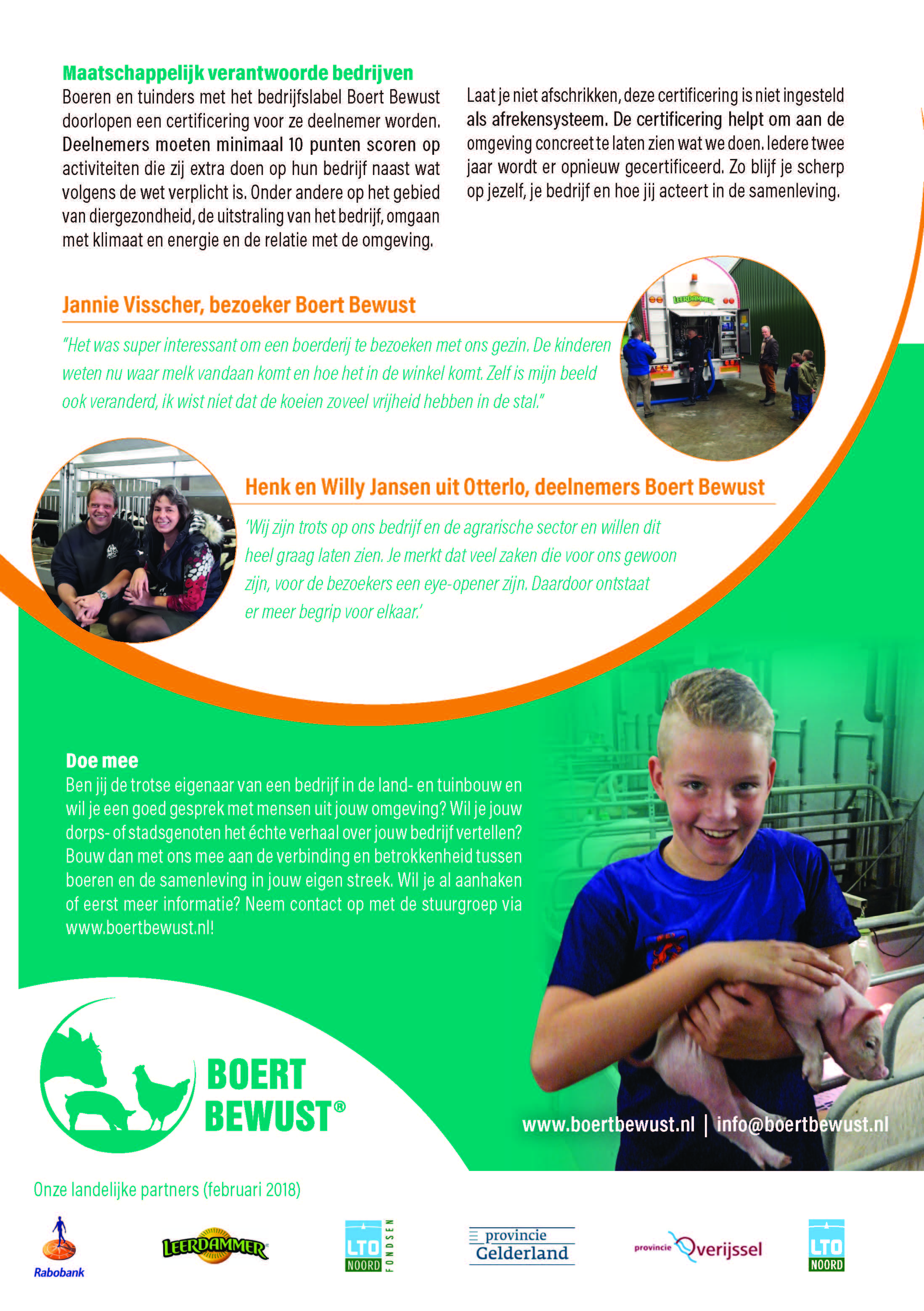 www.ijsseldeltaboertbewust.nl voor meer gegevens en informatie. IJsseldelta Boert Bewust is mede mogelijk gemaakt door een bijdrage vanuit Leader, Europees Landbouwfonds voor Plattelandsontwikkeling. 'Europa investeert in zijn platteland'